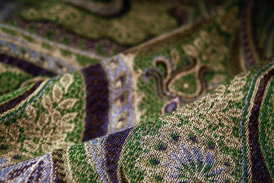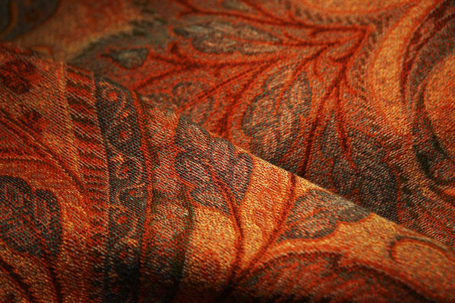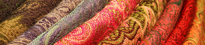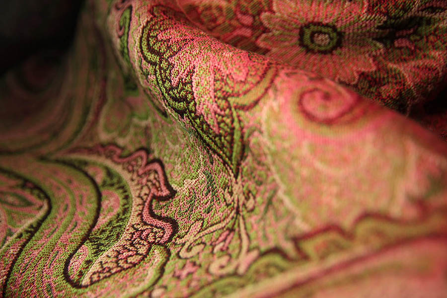 TRADITIONELLE PAISLEYTÜCHER; GROßRAPPORTIG, REINSEIDE / WOLLE (AUCH ALS "WIENER SCHALS" BEKANNT). 4 UND 6-FÄRBIG UND IN 60 FARBKOMBINATIONEN LIEFERBAR.